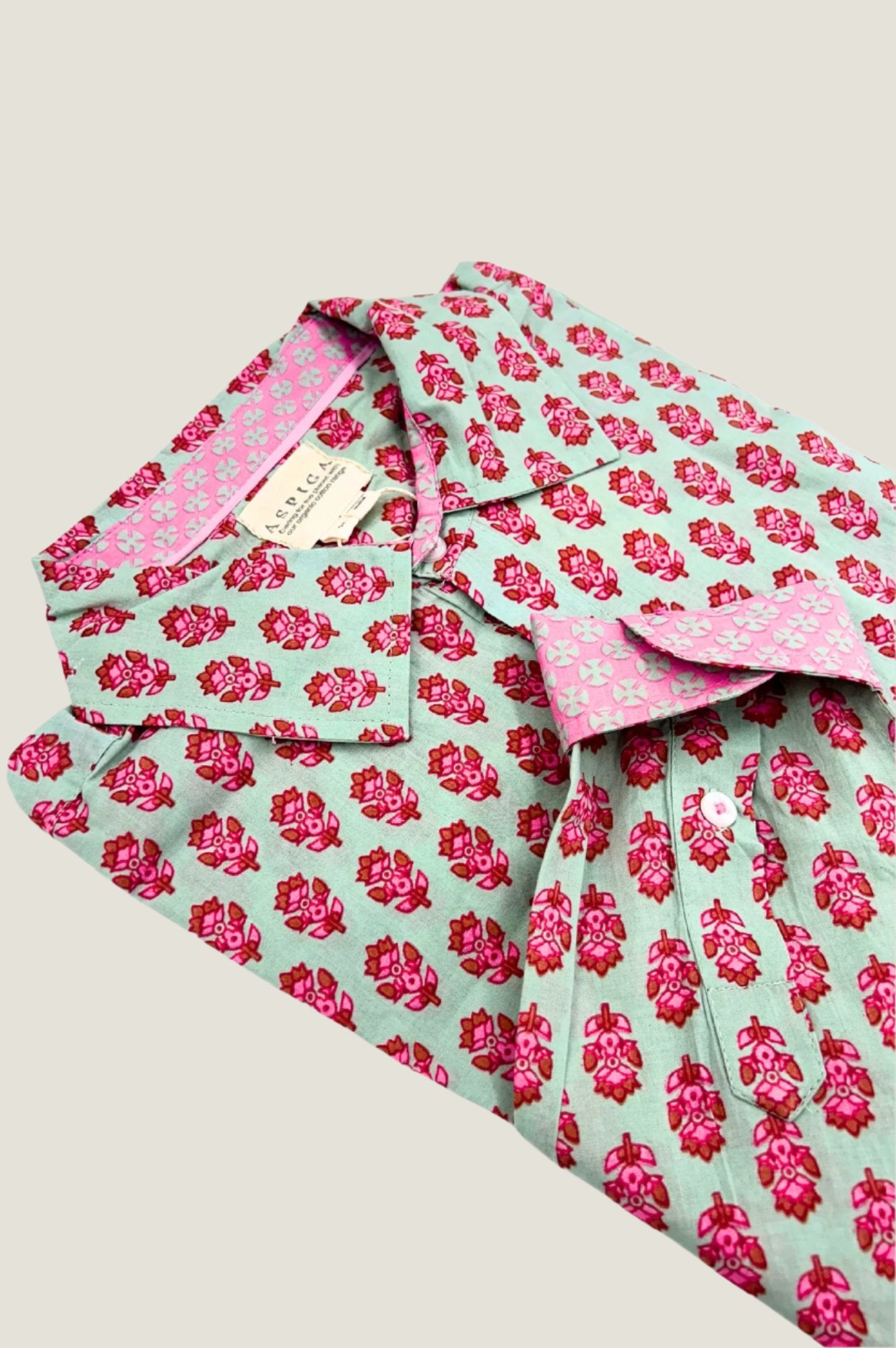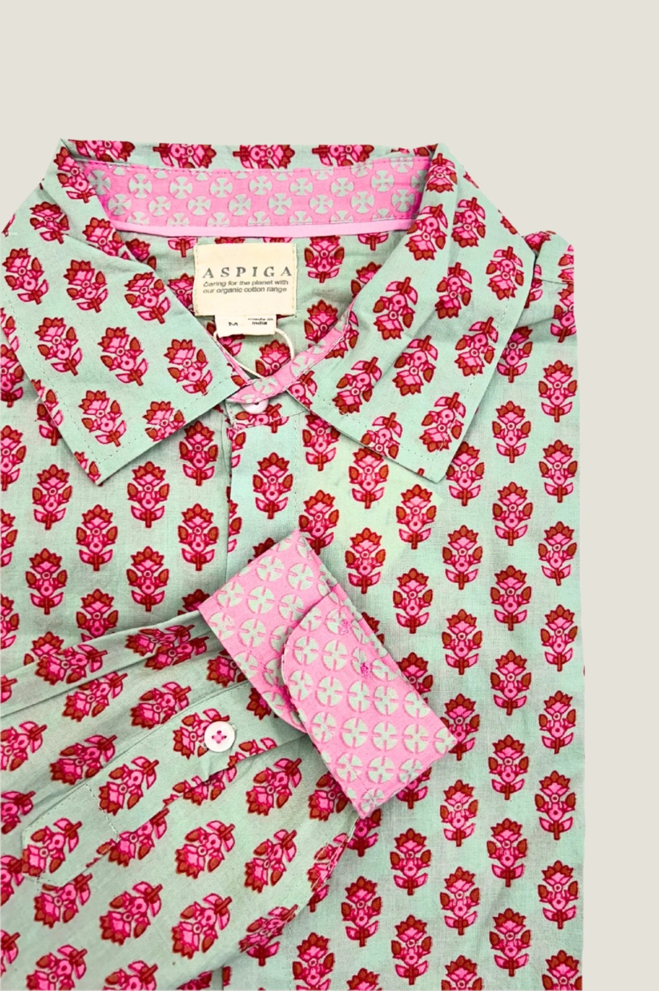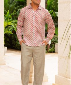 Aspiga Men’s Printed Cotton Shirt | Azalea Khaki/pink | Khaki & Pink