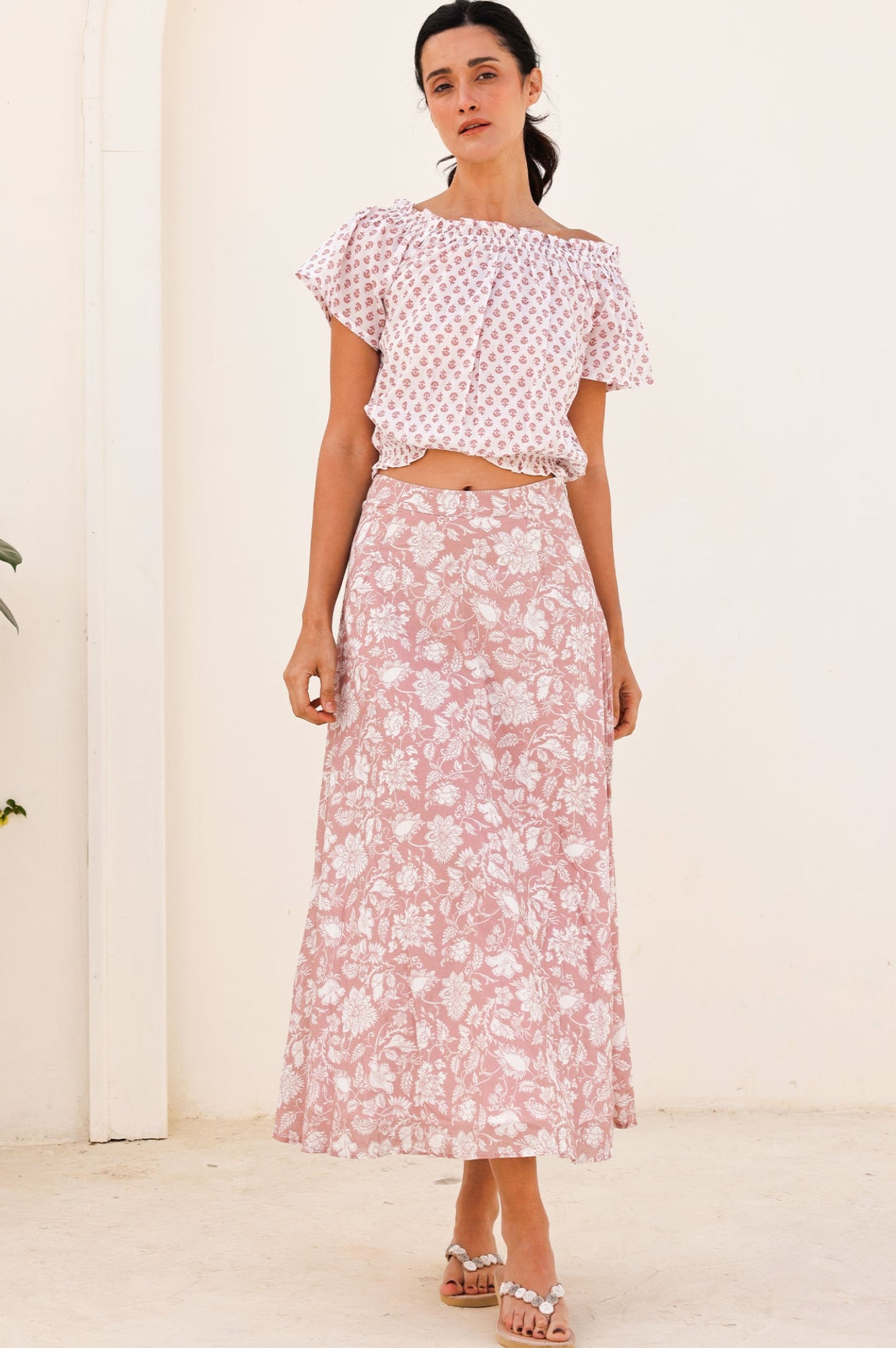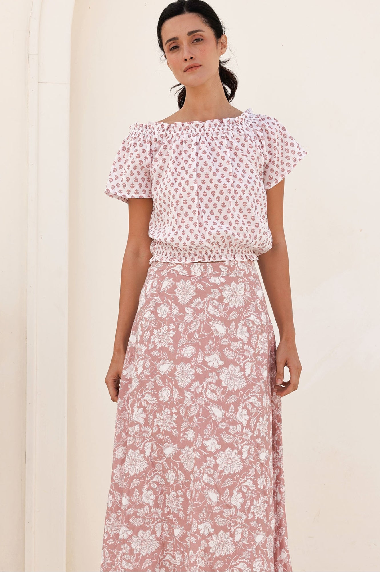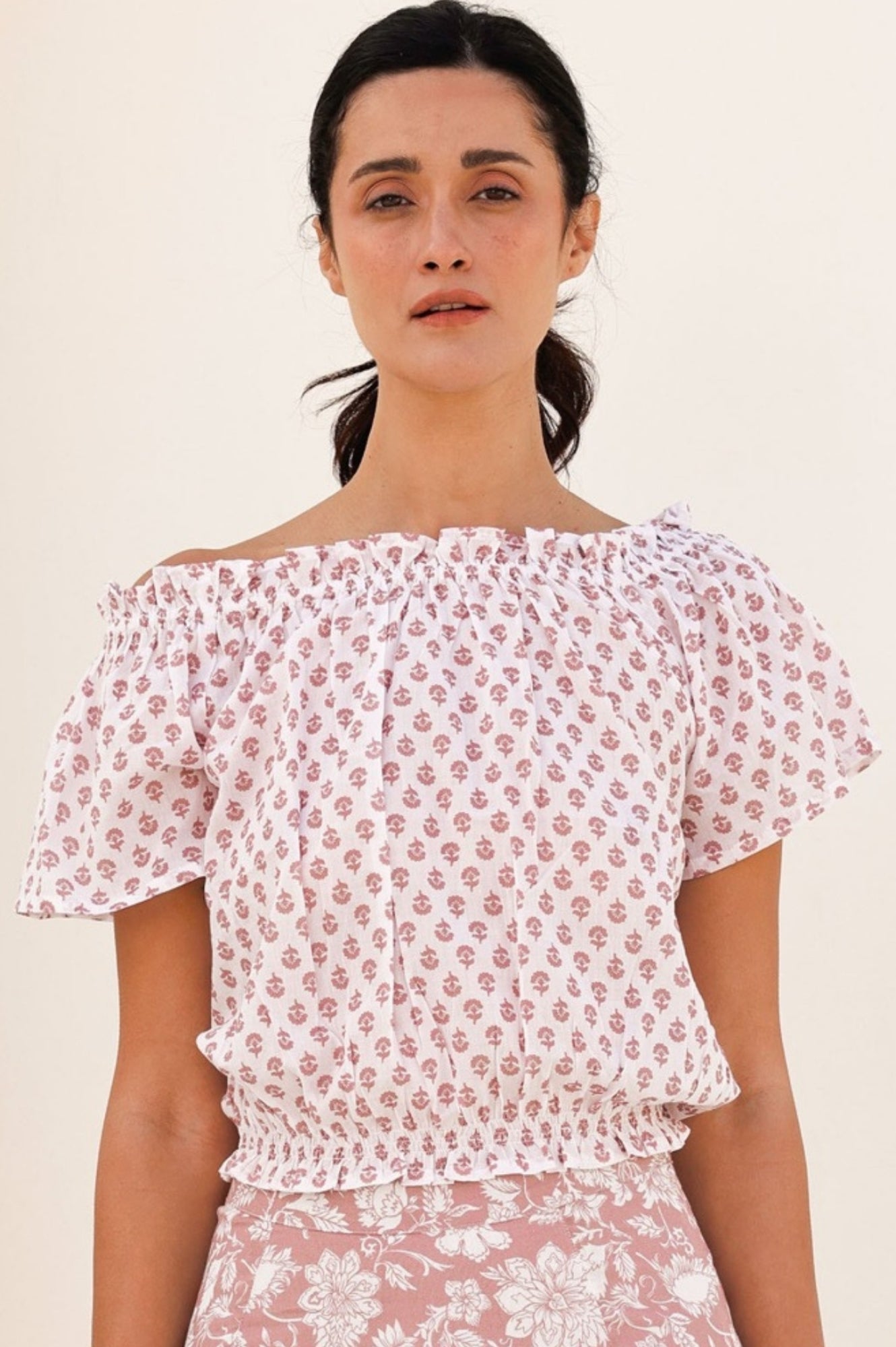 Romantic and feminine, the Ilana Frill Top has endless outfitting possibilities; wear with jeans, our printed maxi skirts or as a cover up on the beach. This top can be worn on or off the shoulder and finishes on the waist with soft elastication.