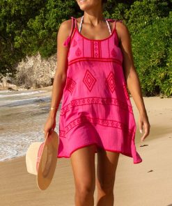 Aspiga Women’s Imogen Cotton Mini Dress | Pink/red | Pink & Red