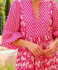 Aspiga Women’s Marina Organic Cotton Print Mix Dress | Dianthus Print Pink/white | Pink & White