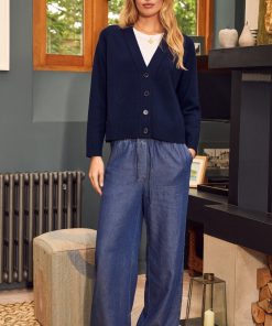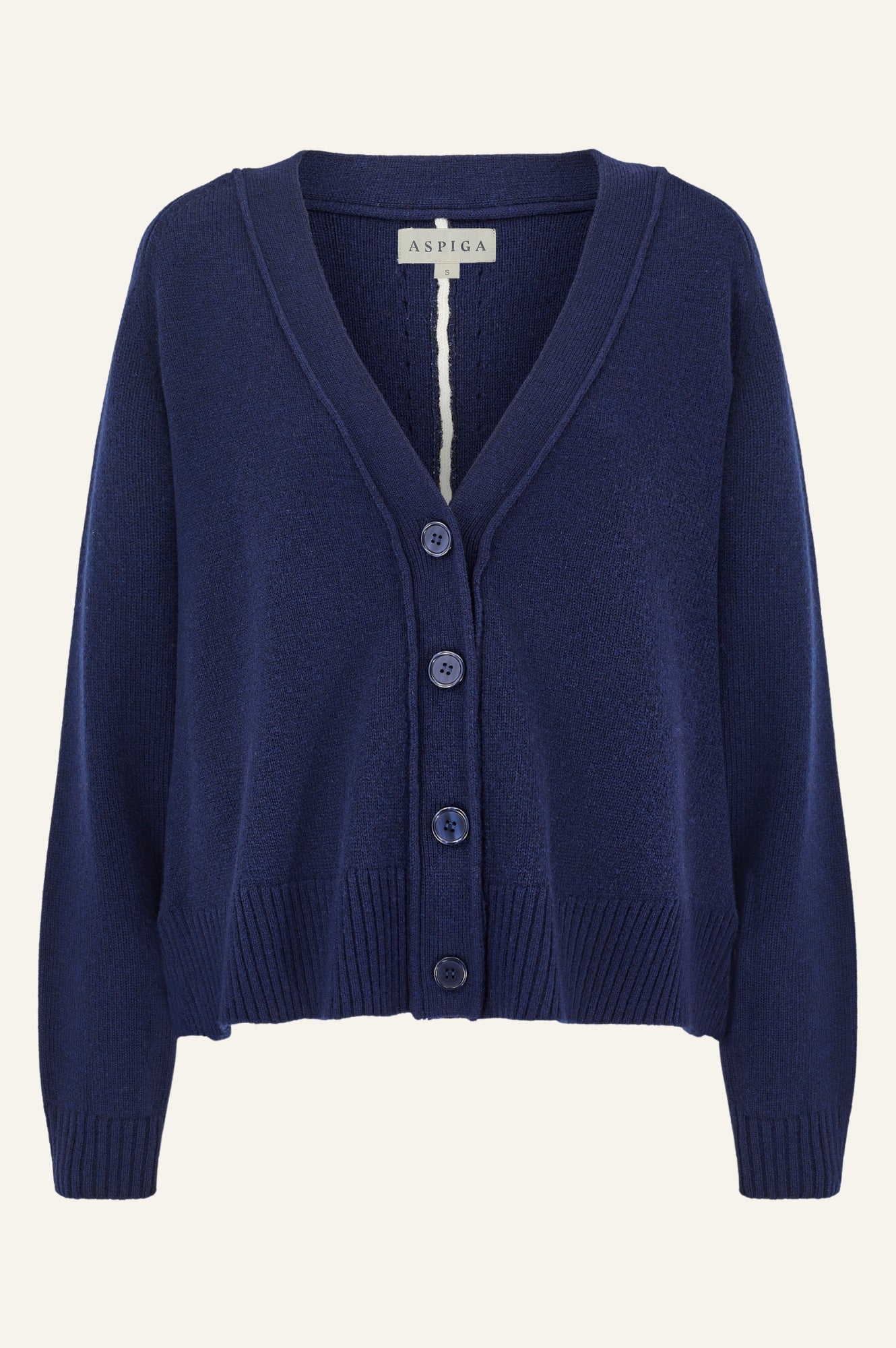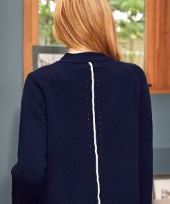 Introducing our new swing cardigan made from 100% merino wool; we love the cashmere soft feel to this cardigan as well as the pointelle details and centre back contrast seam. Knitted to a boxy, loose fitting shape with raglan sleeves, this cardi also features ribbed cuffs and hem.