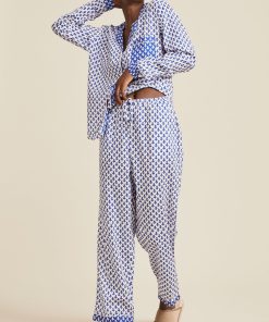 Introducing our lightweight and breathable Pyjama Set is made from soft organic cotton, in a classic button-down design with piping detail. Featuring a contrasting print on the collar, front pocket and cuffs. Paired with the full-length matching bottoms with an elasticated, drawstring waistband and concealed side pockets.