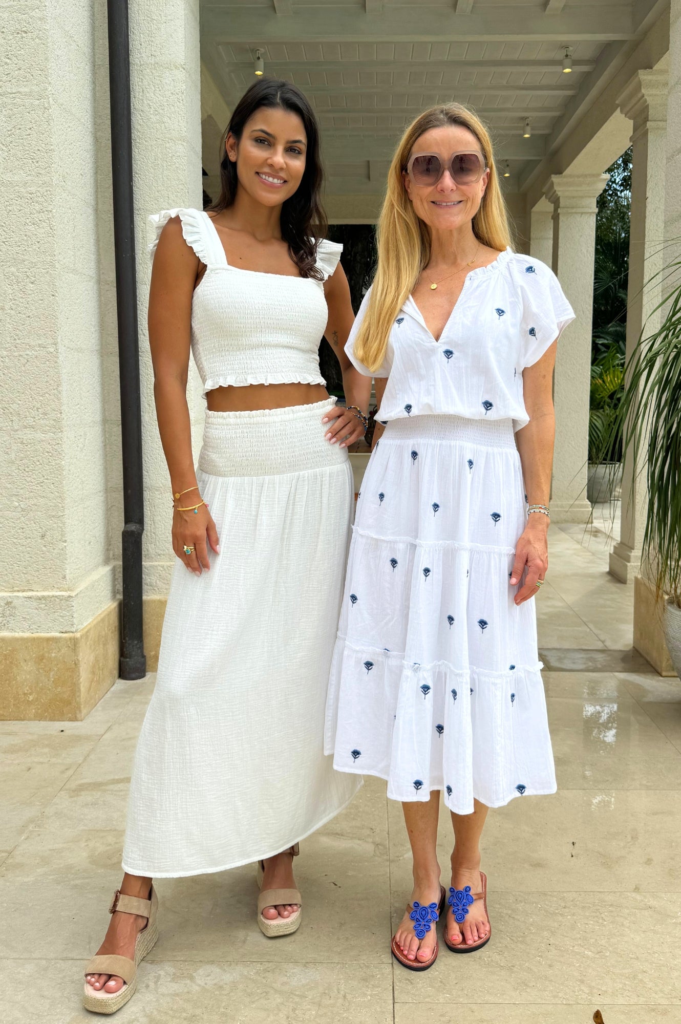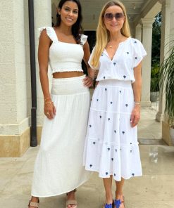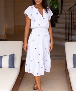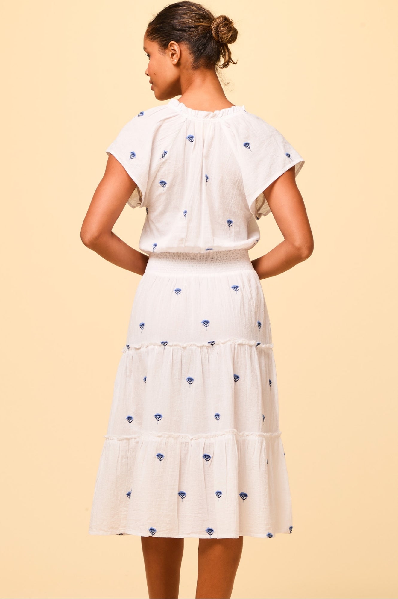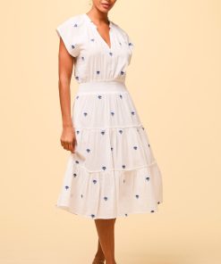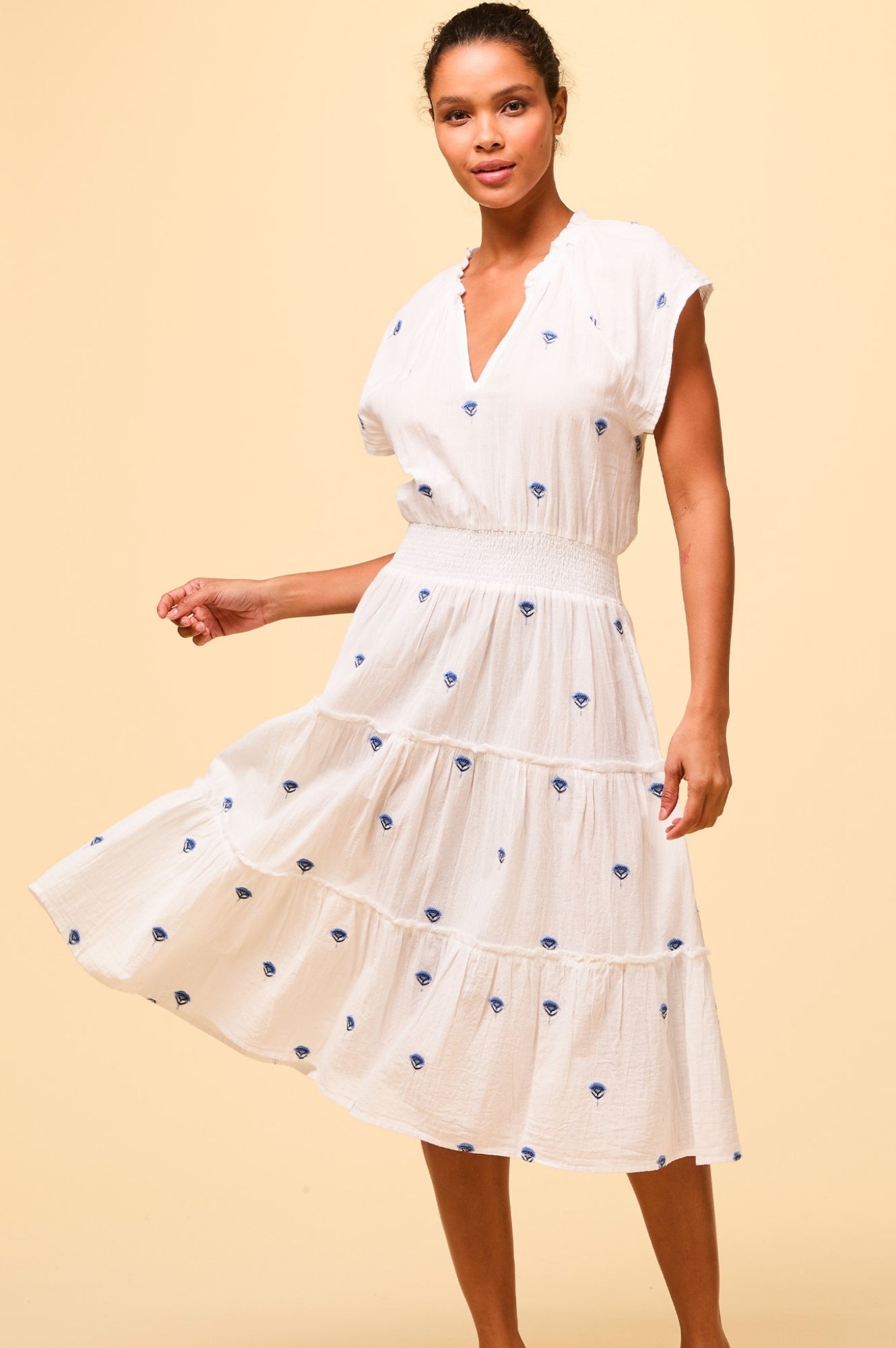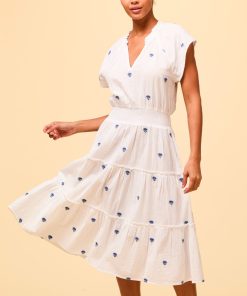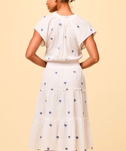 Aspiga Women’s Riley Embroidered Organic Cotton Dress | White/blue | White & Blue
