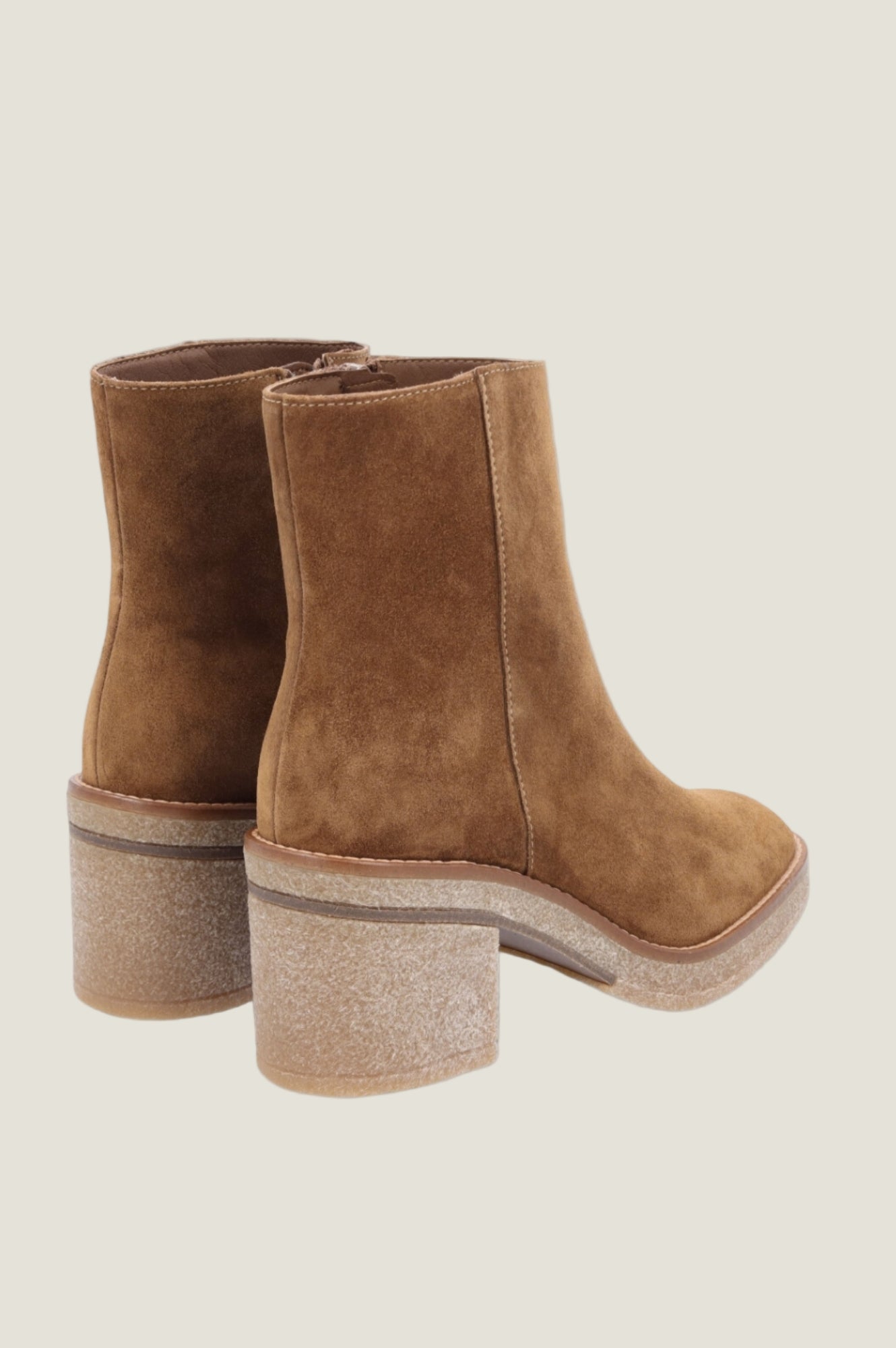 These suede ankle boots by Alpe feature a platform rubber sole and side zip. The block heel is also made from rubber.
