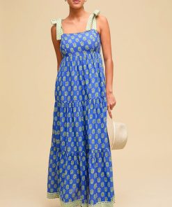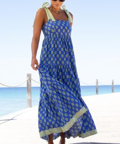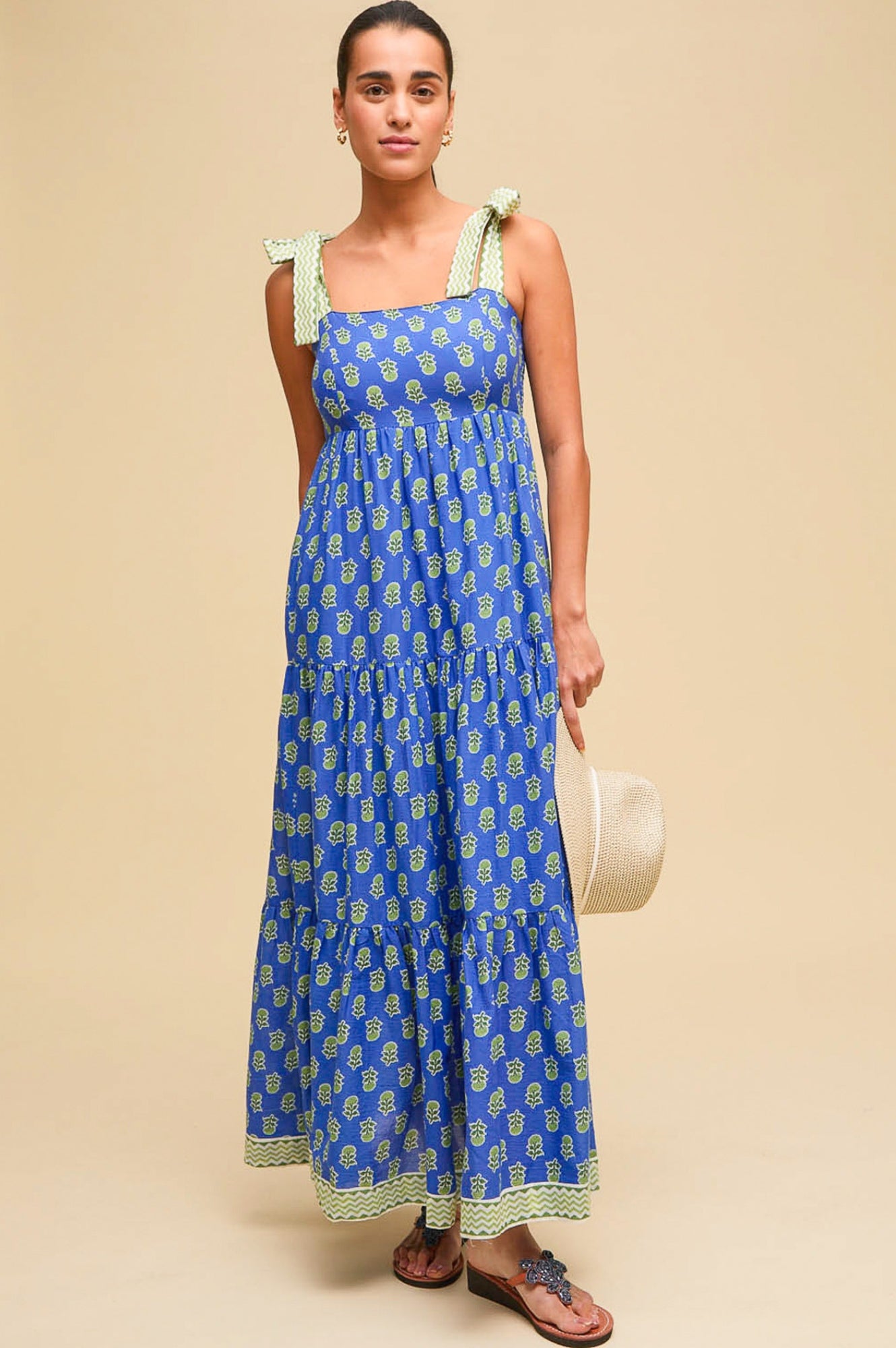 Aspiga Women’s Tabitha Printed Organic Cotton Dress | Odisha Print Blue/green | Blue & Green